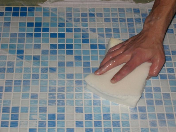 - Использовать следует только губки и щетки мягко щетинистые. Так как грубые щетинки могут повредить меж плиточные швы и глянец;