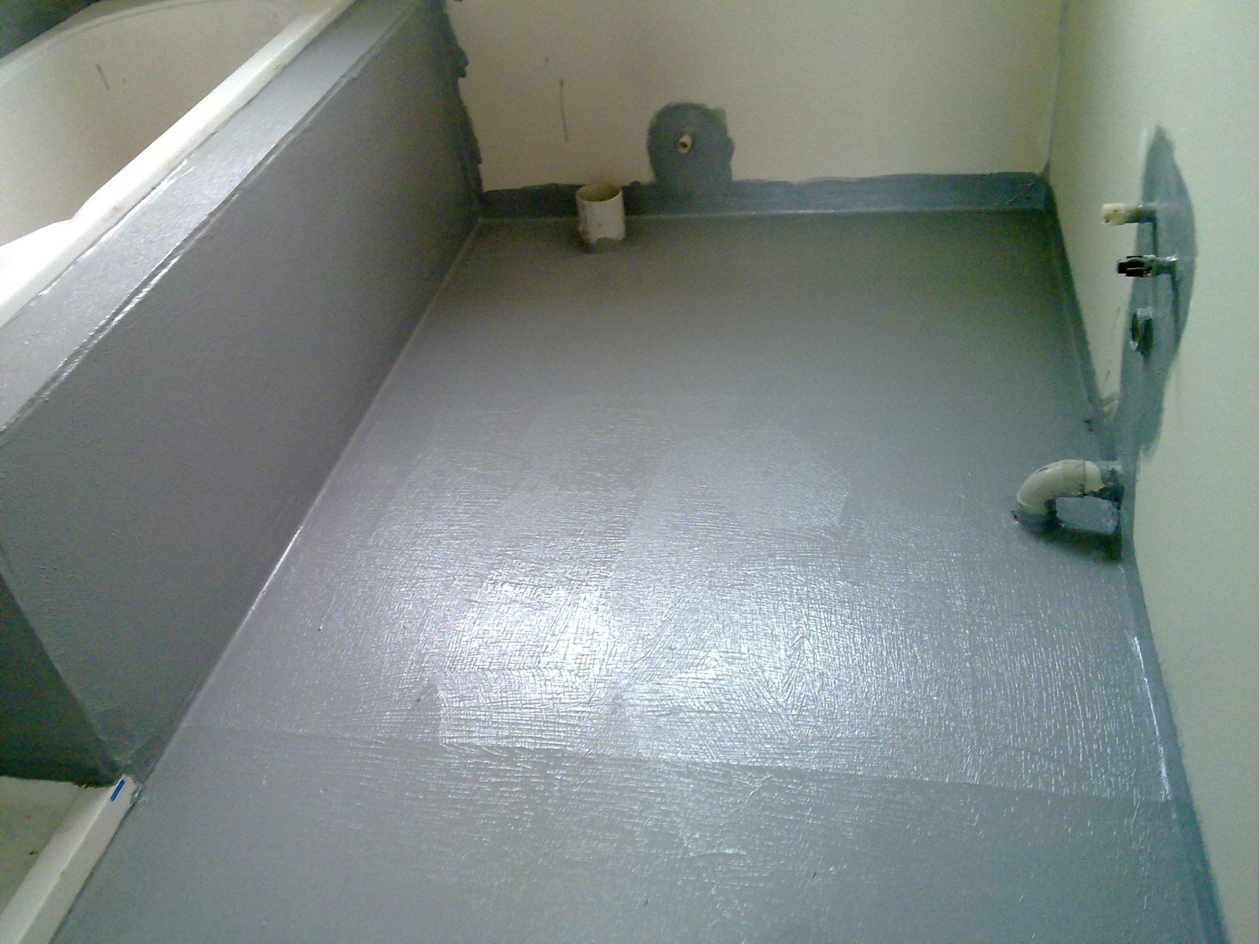Пол лучше застилать пленкой во избежание просачивания воды в раствор при ее случайной утечке. Пленку садят на специальный клей. Для стен идеальный вариант — использование гидроизолирующих жидкостей. Специфика использования последних кроется в создании барьерного влагонепроницаемого слоя.
