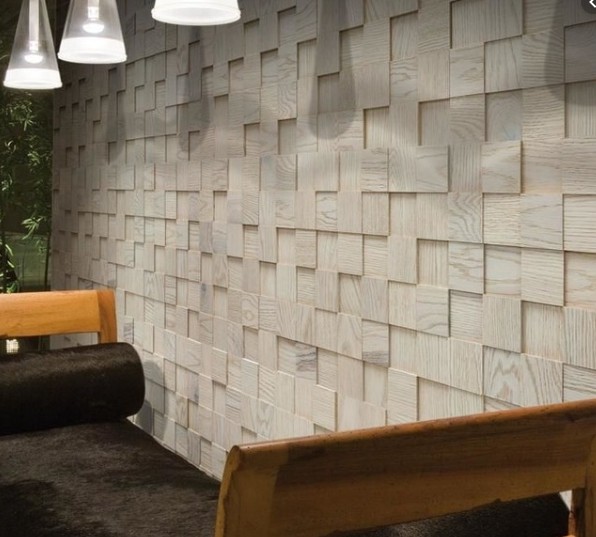 Деревянная мозаика прекрасно подходит для декора офиса и кафе, ресторана, не просто декорируя их, но и скрывая неровности стен. Деревянная мозаика прекрасно подойдет для раздела помещения на зоны, либо использовать как акцент при оформлении интерьера в том или ином стиле. При этом она может изготавливаться не только в виде плитки или квадрата – изогнутые и прямоугольные формы позволяет воплотить в реальности любое дизайнерское решение.