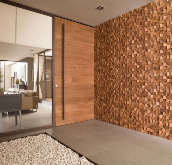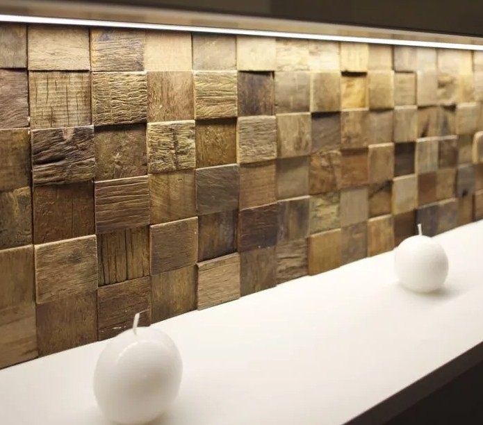 Всегда красиво и оригинально будет смотреться деревянная мозаика в самых разных интерьерах и помещениях, создавая лаконичную и интересную композицию, разделяя помещение на зоны или просто ставя акценты.
