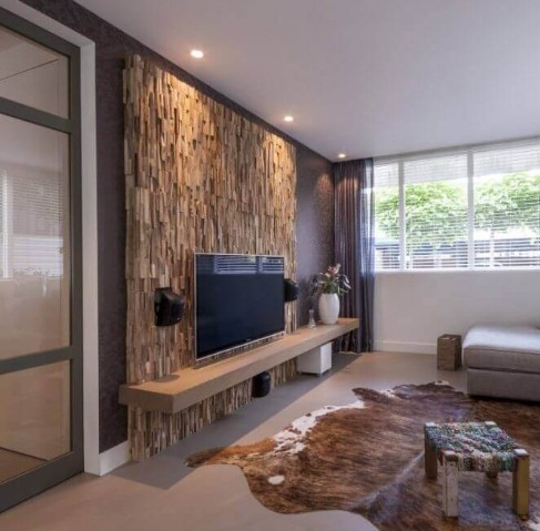 Эффектно смотрится данный тип мозаики в просторном помещении, комнате, особенно, если ее украшает огромное по площади полотно. Именно такой вариант позволит рассмотреть как фактуру, так и переливы цвета древесины. Применяют ее и для отделки пола, при создании напольного покрытия, придавая ему оригинальность, хотя задействуют такую плитку и при отделке мебели лестниц, привлекательно смотрится она даже на столе. Вот несколько примеров применения деревянной мозаики в интерьере: