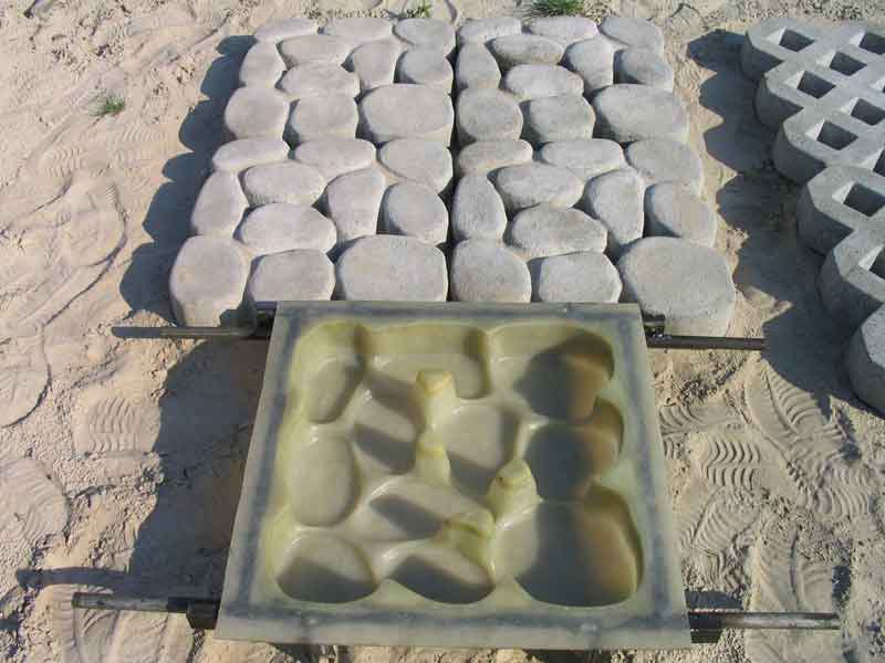 Наиболее практичными считаются формы для тротуарной плитки из силикона. На конструкцию можно нанести скульптурный пластилин для получения нужного узора, который не помешает силикону застыть и использоваться по назначению.