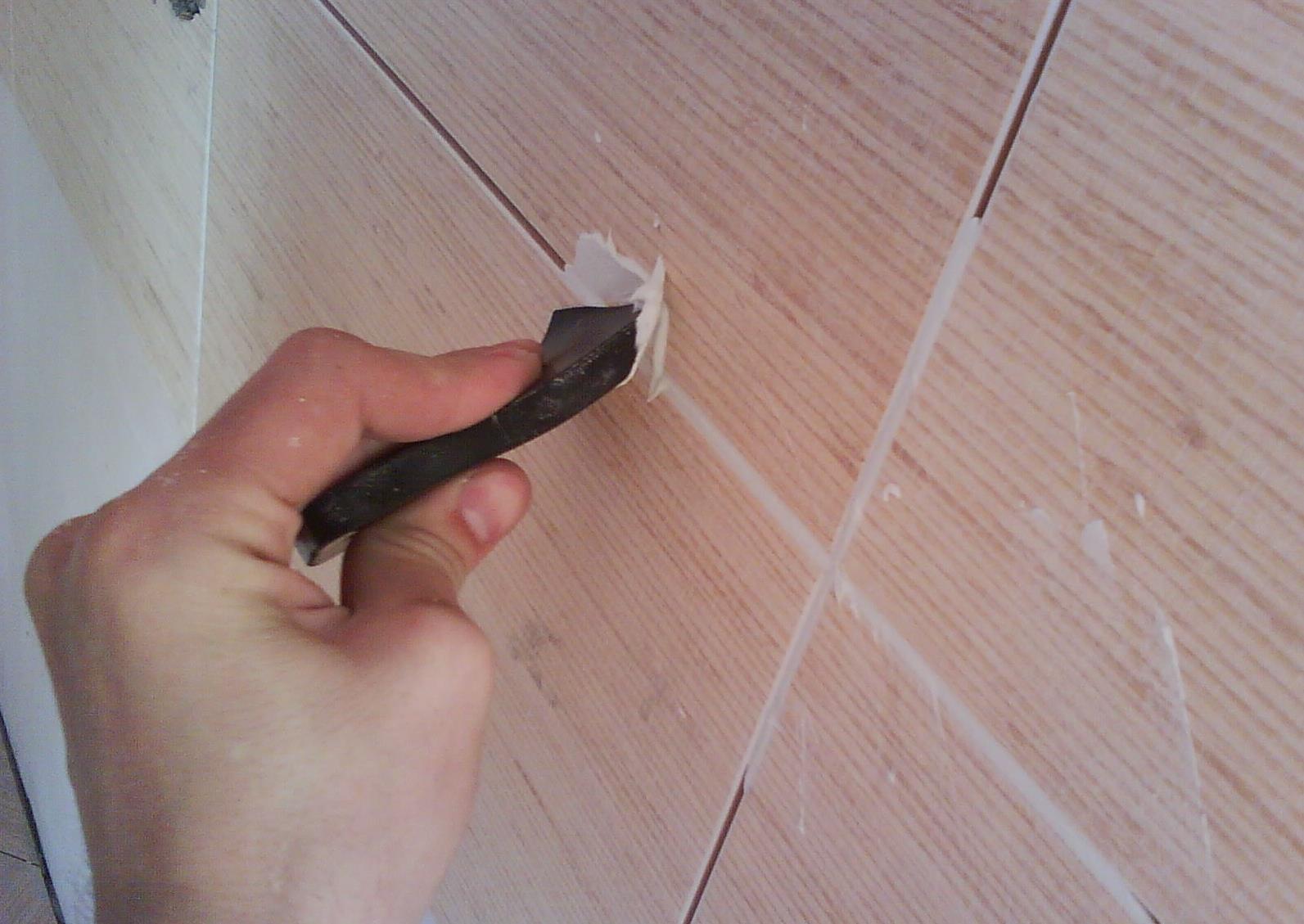 - либо избавляются от старых швов полностью. Для этого, размягчают их кислотным составом и удаляют расшивателем швов. Зачищают крупной наждачной бумагой, удаляют пыль, промывают щелочным раствором (разводят мыло), ждут высыхания, вспоминают, как пользоваться затиркой и приступают к работе.