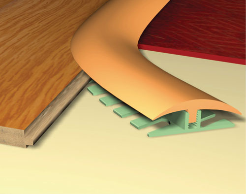 Также можно применять пластиковые порожки, но они не такие крепкие, зато обладают широкой палитрой цветов, что позволит вам подобрать подходящий оттенок для вашего покрытия. Порожек вставляется между плиткой и ламинатом, расстояние между которыми должно быть минимум 5 миллиметров. Они имеют специальные зажимы, которые закрепляются в материале, чтобы молдинг не выскочил. Пластиковые и алюминиевые можно гнуть, а после этого устанавливать в шов. Также часто бывает, что в шов добавляют клеящие составы, которые придают дополнительную прочность соединению.