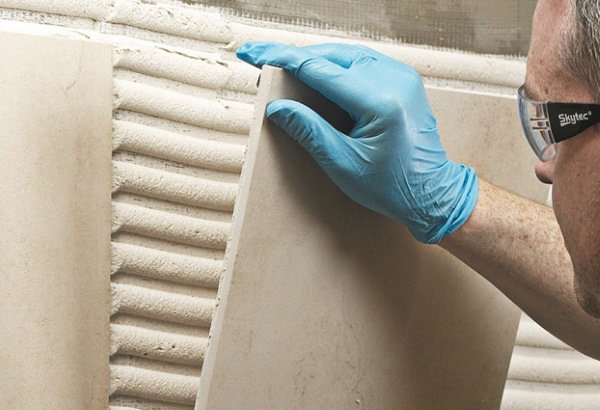 Из всех перечисленных выше клеящих составов реактивные компаунды являются наиболее функциональными, так как позволяют склеивать между собой практически любые материалы, причём, трудоёмкость подготовки «трудных» поверхностей к облицовке невысока – в зависимости от ситуации, могут быть необходимы лёгкая абразивная обработка, обезжиривание, армирование основания.