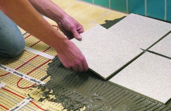 Цементные плиточные смеси применяются и для финишного выравнивания основания под монтаж контуров водяного тёплого пола — после устройства и отверждения несущей бетонной стяжки выявленные неровности устраняются укладкой клея с помощью широкого шпателя.