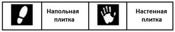 На кафеле для обозначения места корректного использования керамики наносятся маркировка в виде следующих значков: