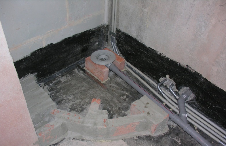 Прежде всего подготовленный пол на месте установки будущего поддона необходимо обработать гидроизолирующим материалом, например битумной мастикой. Хорошая гидроизоляция не только убережет от протекания воды к соседям на нижнем этаже, но и предотвратит образование грибка и плесени.