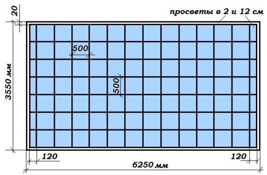 - потолок длиной и шириной 6,25 м и 3,55 м соответственно;