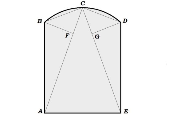 Например, чтобы рассчитать площадь фигуры BFC, можно найти площадь одноимённого треугольника, заменив в формуле длину дуги ВС отрезком.