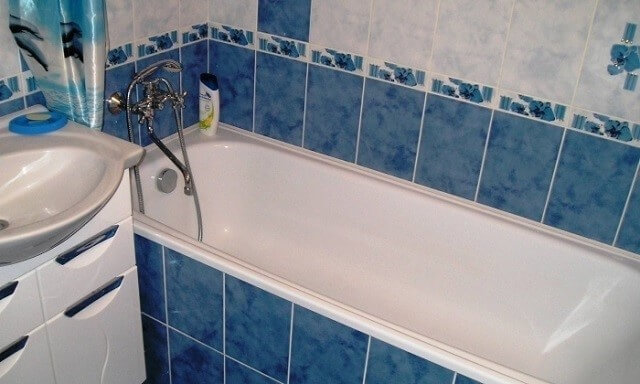 На полу определяют место расположения ванны и отделывают его плиткой – в квартирах обычно это угол помещения. Через пару дней ванну ставят на площадку вплотную в угол, и отмечают линии упора бортов в стены. Затем ванну убирают, и по разметке выполняют штробы, в которые должны войти её борта при монтаже.