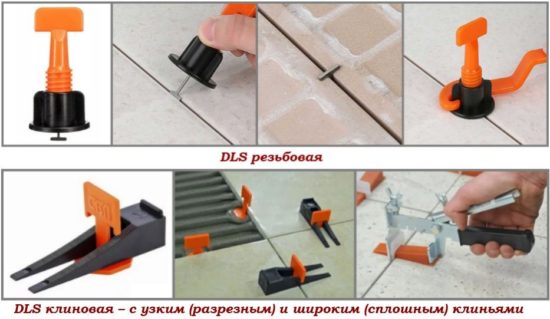 Обе разновидности ДЛС нивелируют соседние плитки путём приведения их в одну плоскость – между нижней и верхней сжимающими деталями, но в первой для сжимания используется резьбовое соединение, а во второй – расклинивание.