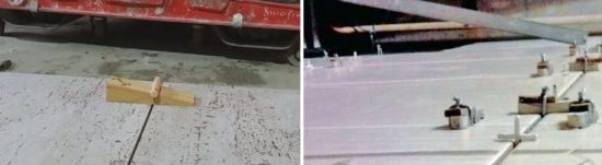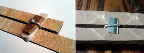 Сначала необходимо изготовить основания зажимов, которые будут располагаться под плиткой и останутся там после укладки. Для этого берут гвозди длиной 30-50 мм, откусывают у них шляпки и нарезают на куски по 1,5-2 см. Можно использовать и полоски листовой стали толщиной 0,5-0,8 мм. Древесина для этой цели не годится – она разбухнет от влаги и может вытолкнуть плитку.