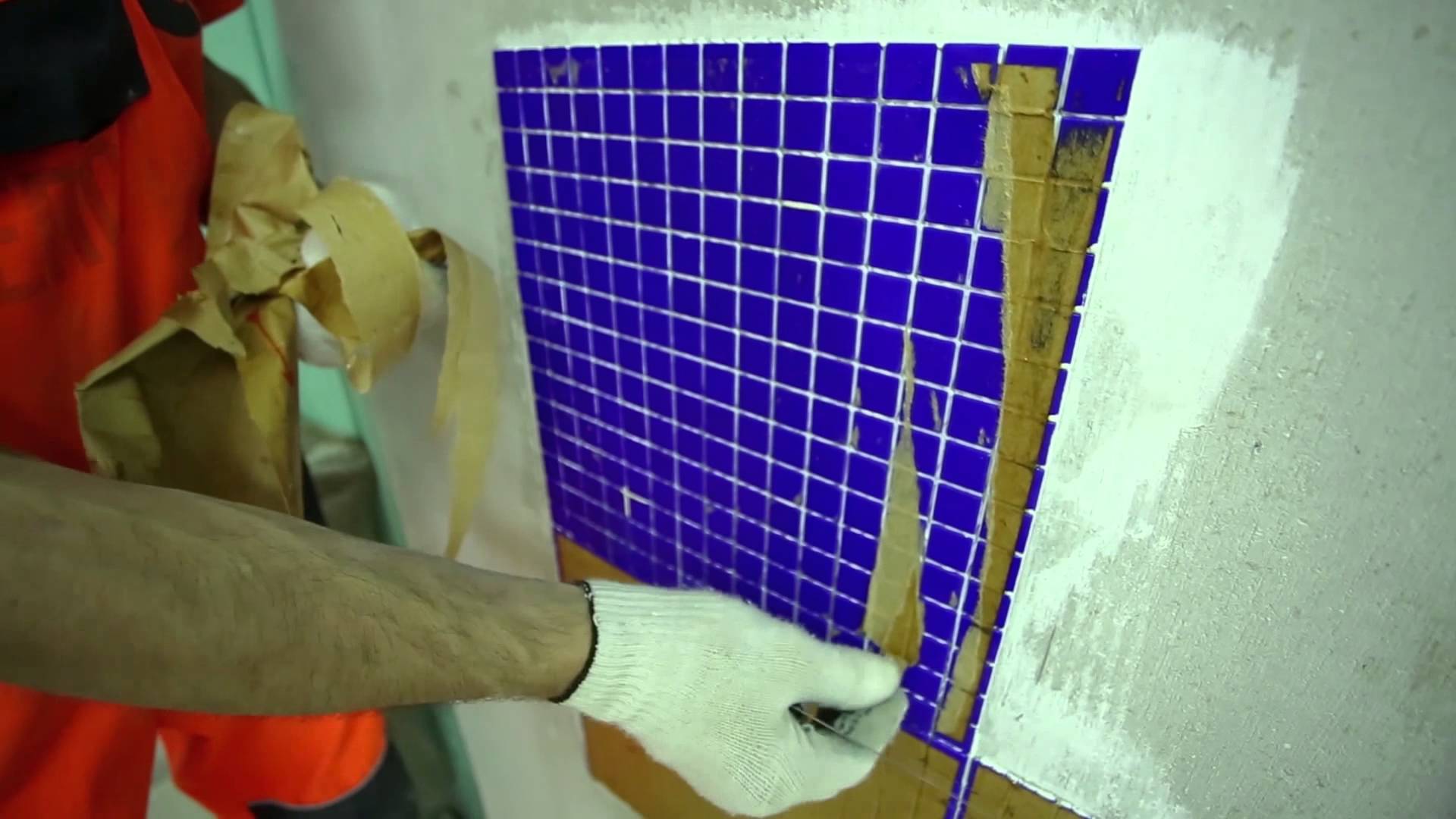 Для облегчения процедуры снятия бумаги и исключения сдвига мозаичных элементов со своих мест бумагу предварительно увлажняют. Делают это посредством теплой воды и губки. Только при намачивании плитки не стараются сильно растирать. Поверхность бумаги примачивают, пока она не впитает в себя влагу и не приобретет темноватый оттенок.